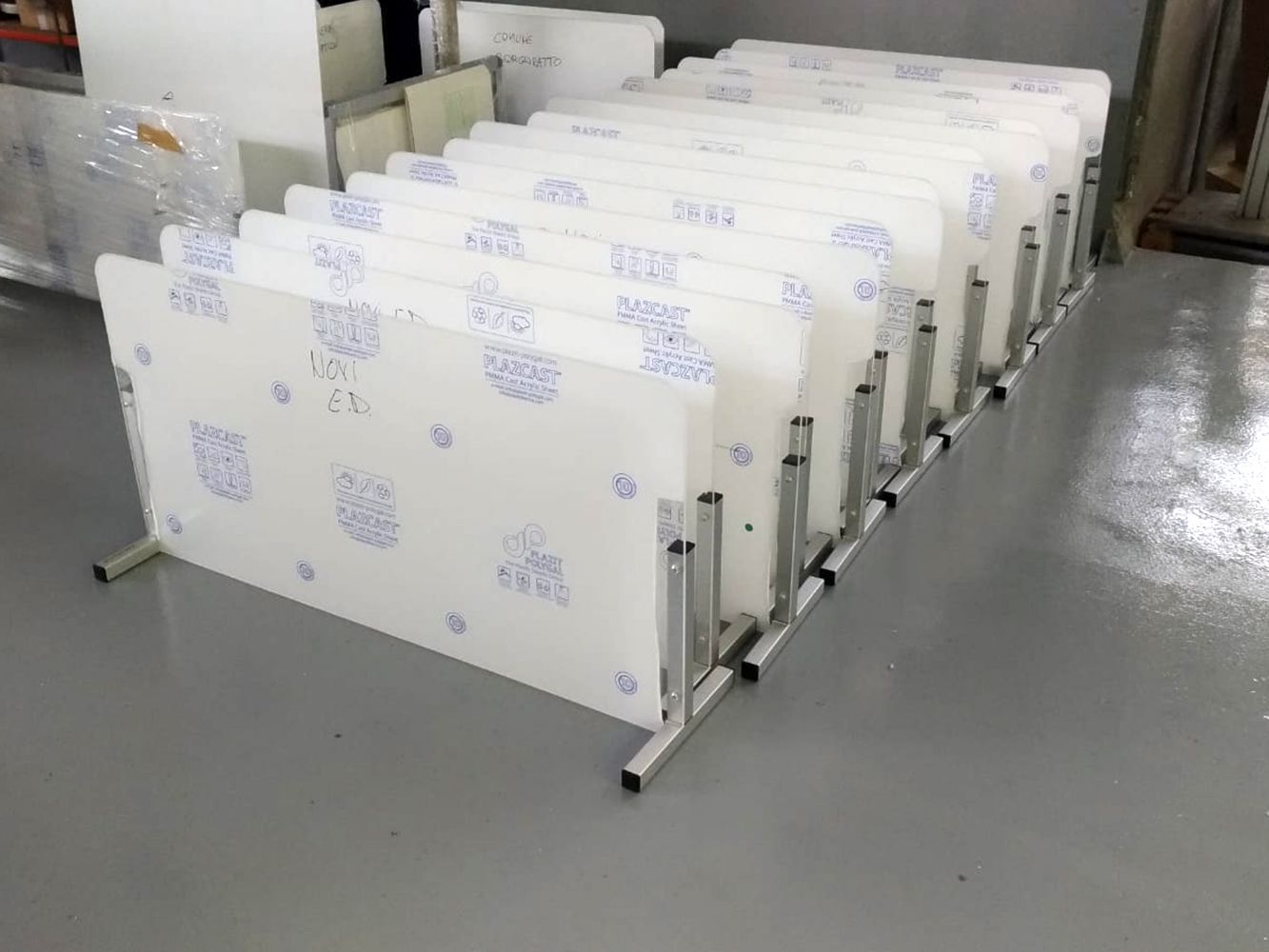 Le nostre barriere sono realizzate con pannelli di policarbonato e telai in alluminio. Questi materiali le rendono particolarmente resistenti e leggeri.
